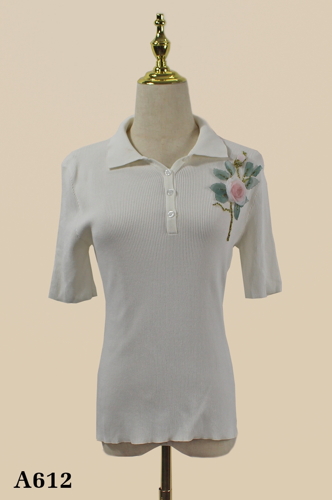 Áo len trắng thêu hoa.