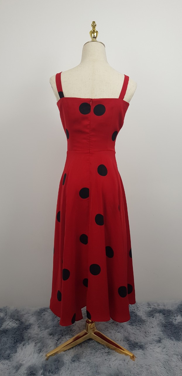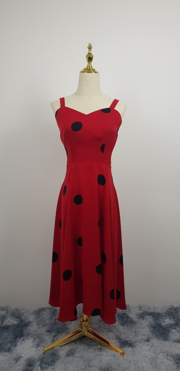 Váy thiết kế 2 dây đỏ chấm bi, độ mới trên 90%.